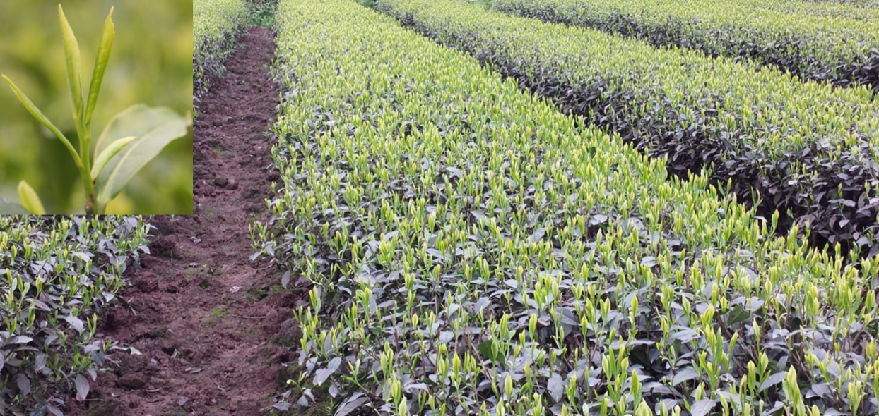 無(wú)性系,灌木型,中葉類(lèi),發(fā)芽期早于龍井43,屬特早生種。