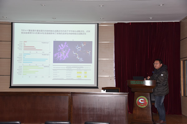 金基強副研究員重點分享了他在茶樹咖啡堿、兒茶素等關(guān)鍵品質(zhì)成分的基因發(fā)掘和利用研究中取得的突破,以生動的實例解析了分子生物學研究技術(shù)在茶樹育種中的實際應用前景,并介紹和分享了他關(guān)于茶樹種質(zhì)資源發(fā)掘?qū)Σ璁a(chǎn)業(yè)發(fā)展作用的思考。