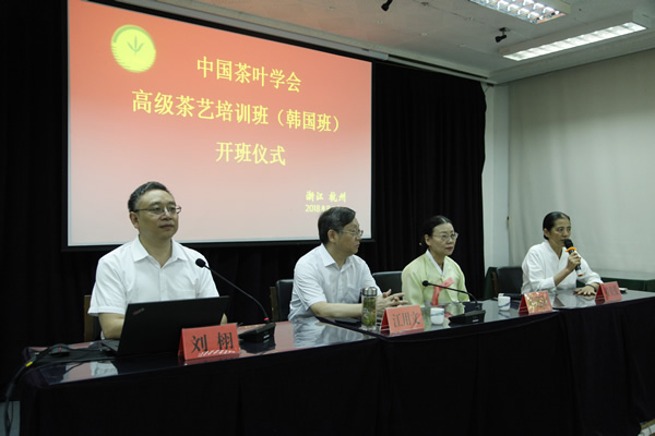 “有朋自遠方來,不亦樂乎!”中國茶葉學會理事長、我所副所長江用文研究員在開幕式上對遠道而來的韓國朋友表示熱烈歡迎,并指出,新世紀以來中國的茶產業蓬勃發展,中韓間茶文化交流日益頻繁。兩年前中國茶葉學會與韓國圓光網絡大學簽訂了合作備忘錄,這期間舉辦了多次茶事交流活動,中韓雙方的茶文化交流跨上了新臺階。這次培訓班也是以此為契機,希望韓國學員對中國的茶和茶文化有更多更深層面的了解,成為中韓茶文化交流的使者。