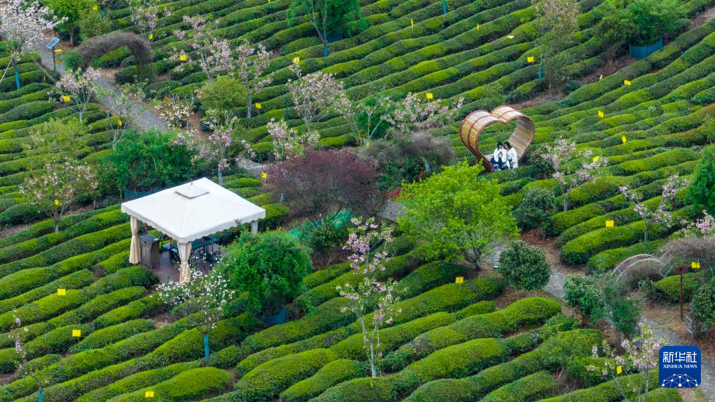 4月5日,游客在安徽省黃山市徽州區(qū)謝裕大茶博園游玩(無人機(jī)照片)。新華社發(fā)(樊成柱攝)