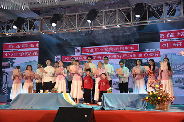 11月20日晚,為慶祝我所建所60周年,一場主題為“光榮與夢想”的職工文藝匯演隆重舉行。我所老中青三代茶人同臺獻藝, 懷揣樸素的家國情懷和對院所、茶業(yè)的無限熱愛,自編自導自演了一臺精彩的晚會。院黨組書記張合成,院黨組成員、紀檢組組長李杰人,院黨組成員、研究生院院長劉大群,院黨組成員、人事局局長賈廣東等院領導,以及院機關和兄弟單位的黨委書記、紀委書記近100人應邀出席了慶祝晚會。我所領導班子成員、陳宗懋院士及在職職工、離退休職工和研究生代表約300人觀看了此次文藝匯演。