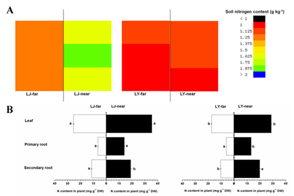 氮素對茶樹產量與茶葉品質具有十分重要的作用。茶園土壤氮素空間異質性普遍存在,長期的免耕等保護性耕作和肥料的條狀淺施導致土壤中氮素的空間分異加劇。并且,茶園普遍采用的雙行雙株側窩種植模式會加劇土壤氮素的空間異質性。因此,探析茶樹對土壤氮空間異質性的適應機制十分重要。近年來,我所茶樹遺傳育種團隊成浩課題組,對茶樹耐氮貧瘠的生理和分子響應機制做了系統研究,在茶樹對土壤氮空間異質性的適應機制方面取得了重要進展。