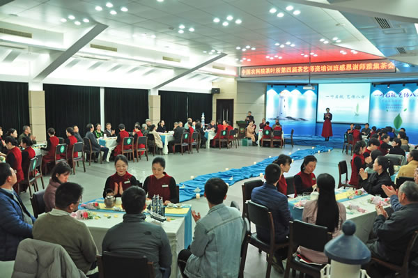 12月6日上午,由我所和中國茶葉學會聯合主辦的第四屆茶藝師資培訓班感恩謝師畢業雅集茶會在杭舉行。本次茶會以“一葉啟航 藝傳八方”為主題,邀請了中國國際茶文化研究會常務副會長、杭州市原市長孫忠煥先生,浙江省職業技能鑒定中心吳藺副主任,浙江省人力資源和社會保障廳職業能力建設處黃曉紅副處長,中國茶葉博物館吳曉力館長等領導、任課教師、茶友及媒體代表共計100余人,共品佳茗,回首習茶路,感念師恩情,揚帆再起航。