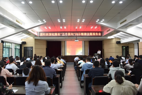 5月20日下午,根據所黨委工作部署,所青工委舉辦了“不負青春心向黨,興茶富農勇擔當”——深化落實“三個面向”指示精神主題報告會。所領導姜仁華、江用文、魯成銀、阮建云,以及全所職工、研究生近200人參加會議。會議由黨委委員、所青工委主任王新超主持。