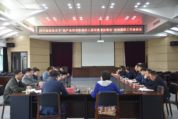 11月19日,由四川省政協副主席祝春秀率領的調研組在我所召開關于“茶產業培育和農村人居環境整治情況”在浙調研工作座談會。浙江省農業農村廳、財政廳、建設廳、文旅廳相關部門負責人,我所姜仁華書記、阮建云副所長、陳宗懋院士參加座談會。浙江省政協、農業和農村委員會專職副主任孫勤明主持會議。