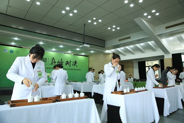 現場,學員們分成“清澈明亮”“馥郁芬芳”“濃強鮮爽”“鋒毫顯露”四個戰隊,開展了認茶識茶、茶湯品質排序、香氣品質排序、茶葉拼配等一系列比拼。通過近兩個小時的激烈角逐,各站隊充分展現了茶葉感官審評技術水平,經裁判組商議,綜合各環節難度系數,以在香氣品質排序中優勝的“鋒毫顯露”戰隊為最終的總冠軍,并為之頒發了獎牌。