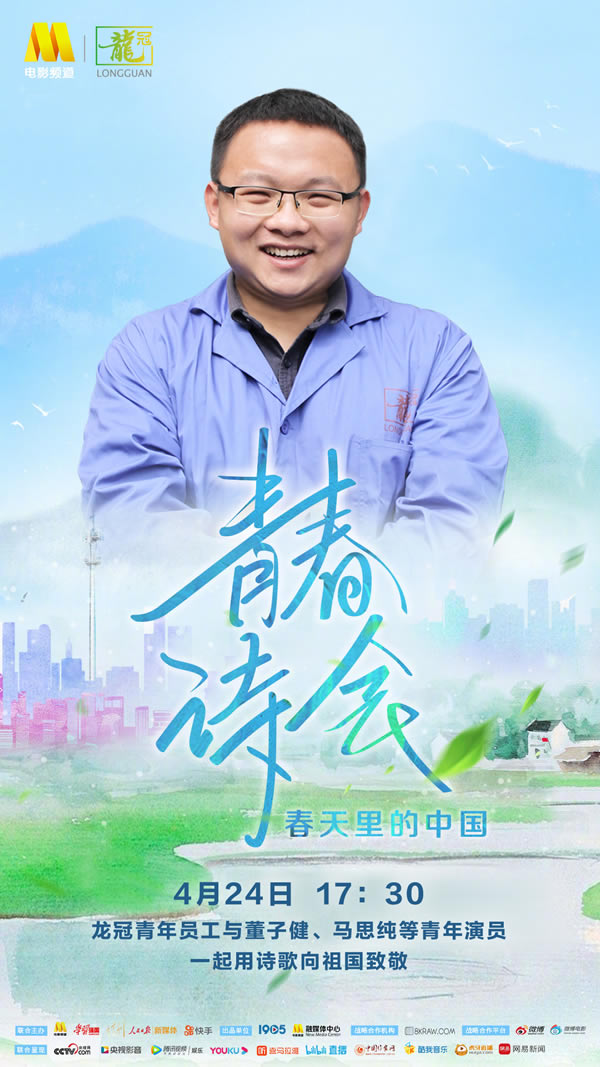 4月24日,電影頻道融媒體直播《青春詩會·春天里的中國》中,龍冠的青年員工作為農(nóng)業(yè)行業(yè)代表與中國青年電影人、其他行業(yè)青年代表以青春之詩詠青春之志。