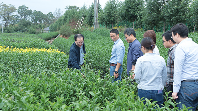 陳紅金一行考察了基礎設施、長期定位試驗等,阮建云副所長詳細介紹了基地建設運行和試驗開展情況。