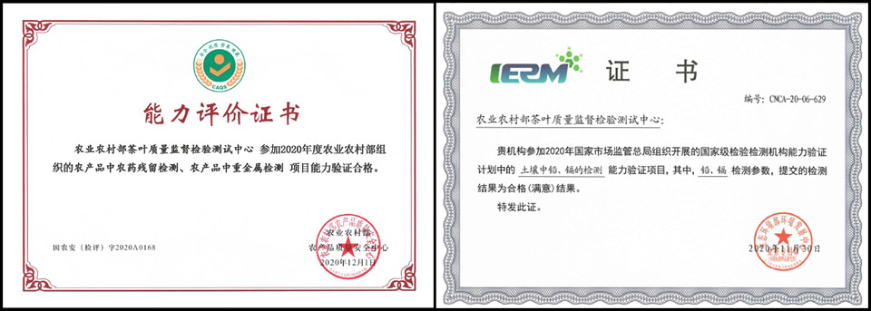 2020年,農(nóng)業(yè)農(nóng)村部茶葉質(zhì)量監(jiān)督檢驗(yàn)測試中心(以下簡稱“中心”)先后參加了FAPAS、農(nóng)業(yè)農(nóng)村部、國家市場監(jiān)管總局等國內(nèi)外認(rèn)可度高的8項(xiàng)能力驗(yàn)證,涉及茶葉、蔬菜、土壤中農(nóng)藥殘留、重金屬等指標(biāo),均取得優(yōu)異成績,考核全部通過。