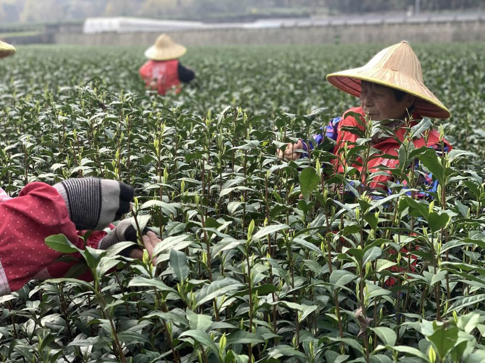 3月12日,位于杭州西湖景區的杭州龍冠龍井示范茶園里,采茶工們已經忙開了。新華社記者許舜達 攝