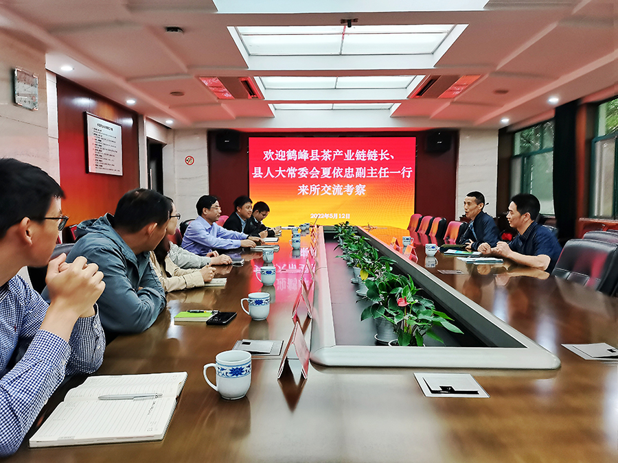 5月13日,鶴峰縣茶產(chǎn)業(yè)鏈鏈長、縣人大常委會夏依忠副主任一行來訪。所長姜仁華參加接待并進行座談。