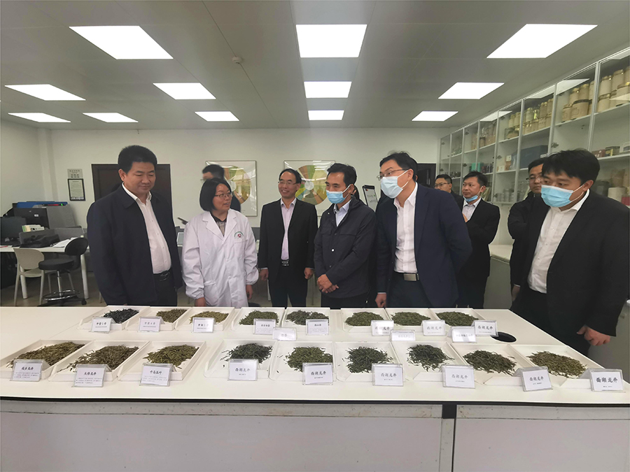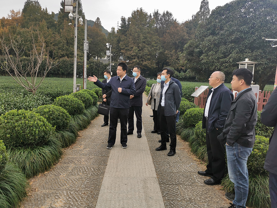 在所期間,代軍一行先后考察了良種示范茶園、國(guó)家茶樹(shù)種質(zhì)資源圃、質(zhì)檢中心和陳宗懋院士實(shí)驗(yàn)室。