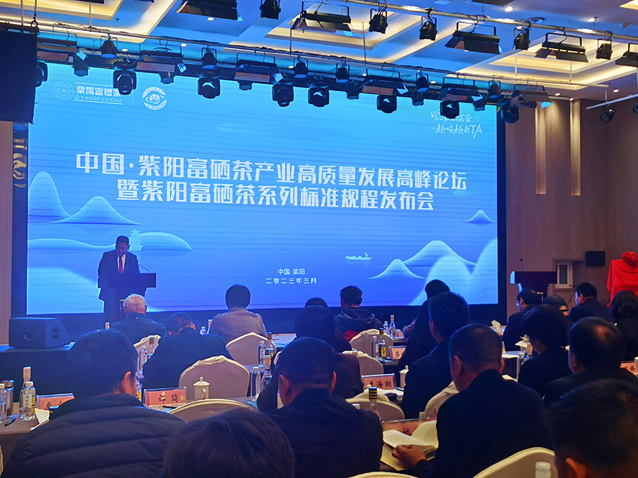 3月25日,在“中國·紫陽縣富硒茶產業高質量發展高峰論壇”上,紫陽縣委常委、副縣長陳德鈞代表縣委縣政府發布由我所牽頭制定的《紫陽富硒茶生產技術規程》(以下簡稱《規程》)。紫陽縣縣長王燊、副縣長蔡英宏,我所副所長王新超,國家茶葉產業體系首席科學家楊亞軍研究員參加相關活動。