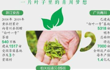 2018年4月,浙江安吉黃杜村20名農民黨員給習近平總書記寫信,提出愿意捐贈1500萬株茶苗幫助貧困地區群眾脫貧。青川是四川省唯一的受捐縣。2018年、2019年,黃杜村累計向青川縣捐贈“白葉一號”茶苗540萬株,建成1517畝受捐茶苗基地,涉及沙州鎮青坪村、關莊鎮固井村、喬莊鎮瓦礫村3個貧困村。經過精心培育,這批茶苗已長成致富茶。