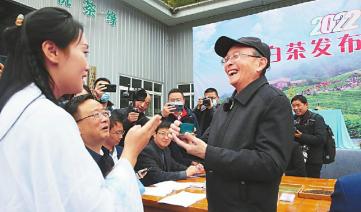 在采茶儀式后的品茶活動現場,茶藝師取出此前預制好的青川白茶泡好,倒出第一杯,敬給一位精神矍鑠的老人。老人叫白堃元,今年82歲,曾任中國農業科學院茶葉研究所副所長。自1997年開始浙江對口幫扶廣元,派白堃元到青川,為種茶、制茶提供技術幫助。在浙川兩地間往來奔波25年,老人“手把手”將浙江優勢茶產業“嫁接”到青川。“白葉一號”茶苗進入青川后,白堃元又參與到白茶管護中。如今,茶產業已成為青川縣農業“一號產業”,全縣茶葉種植面積達27.4萬畝。“口感不錯,鮮爽味很好。”喝下感恩茶,白堃元感慨,這些年目睹青川茶產業由小到大、由弱到強,“其中滋味酸甜苦辣,但今天品到的是回甘。”