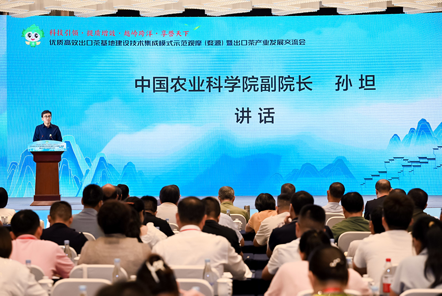 9月19-21日,由我所和國家茶葉產業技術體系主辦的“優質高效出口茶基地建設技術集成模式示范觀摩(婺源)暨出口茶產業發展交流會”在江西省婺源縣成功舉辦。來自全國10個省(市)110家單位200余名代表齊聚一堂共商出口茶基地建設新思路,共謀出口茶發展新策略。中國農業科學院副院長孫坦,我所所長姜仁華、副所長王新超,江西省委農辦專職副主任蘭永清和上饒市委常委、副市長帕塔爾·胡加買提,婺源縣委書記徐樹斌等領導參會。中國工程院院士陳宗懋線上致辭。