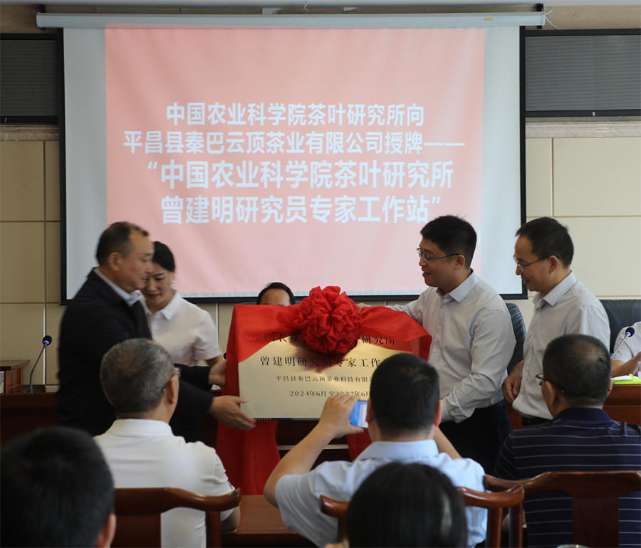 期間,“中國農(nóng)業(yè)科學院茶葉研究所曾建明研究員專家工作站”在平昌縣秦巴云頂茶業(yè)科技有限公司授牌。工作站今后將重點圍繞優(yōu)質(zhì)茶機采機制,集成我所研制的適宜優(yōu)質(zhì)茶機采的“中茶”系列新品種、新技術、新裝備,通過示范帶動,推進川東北茶區(qū)優(yōu)質(zhì)茶機采機制工作,助力平昌縣茶產(chǎn)業(yè)的高質(zhì)量發(fā)展。