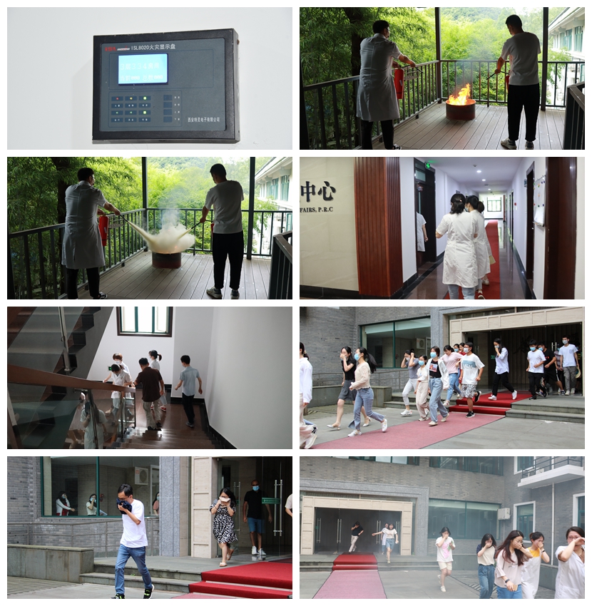 演練模擬火災現場設置于3號樓三樓。附近人員發現火災后立即啟動消防報警系統,疏散引導員組織樓內人員有序從消防通道疏散撤離。消控值班人員收到火警信息后,立即啟動消防控制室火災報警應急處置流程,上報演練總指揮,按照指示,啟動滅火與應急疏散預案,所微型消防站隊員趕往火災現場增援。隨即西湖風景名勝區消防救援大隊到達,了解位置和人員被困情況后,快速開展救援,微站隊員配合消防救援隊開展后續火災撲救。最后,消防救援大隊教員對此次演練進行了講評和指導。