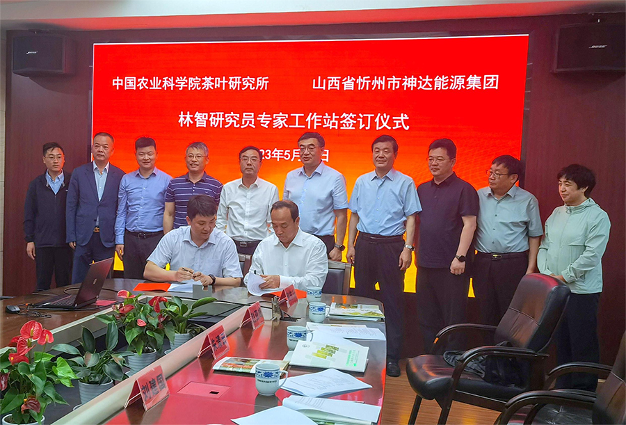 會上,還舉行了林智專家工作站簽約儀式。2020年,我所已在山西神達(dá)朝凱蘆芽山農(nóng)業(yè)開發(fā)有限公司設(shè)立專家工作站,茶葉品質(zhì)化學(xué)與營養(yǎng)健康創(chuàng)新團(tuán)隊解析了山西毛健茶的化學(xué)成分與降尿酸功能,相關(guān)研究成果發(fā)表在《Food Research International》期刊上,推動了毛健茶健康功效研究。
