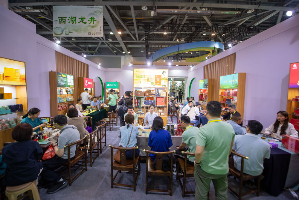 5月17日,觀眾在第六屆中國(guó)國(guó)際茶葉博覽會(huì)現(xiàn)場(chǎng)品茶。新華社記者 江漢 攝