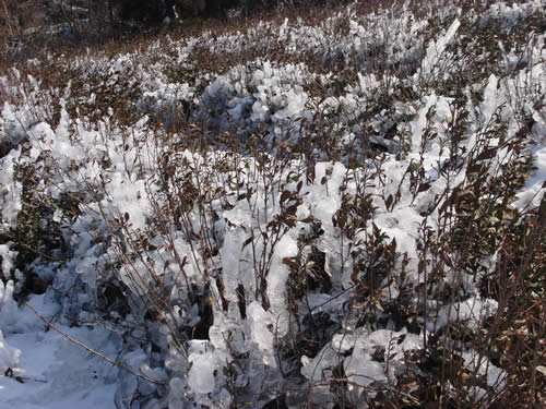 葉陽(yáng)主任一行在寧海縣農(nóng)林局和望府茶業(yè)有限公司基地與當(dāng)?shù)夭枞~技術(shù)推廣人員、茶農(nóng)進(jìn)行座談,到茶園了解凍害情況。寧海縣農(nóng)林局總工程師林偉平詳細(xì)介紹了全縣茶園受災(zāi)情況,認(rèn)為寧海茶園受凍較嚴(yán)重,據(jù)統(tǒng)計(jì)全縣約有10000畝成齡茶園和2000畝幼齡茶園受凍,直接經(jīng)濟(jì)損失1000萬(wàn)元以上,受凍嚴(yán)重的茶園主要分布在海拔400米以上的地區(qū)。他認(rèn)為,茶樹(shù)凍害已成為近年來(lái)茶園急需解決的技術(shù)難題,希望能有切實(shí)有效的技術(shù)措施。