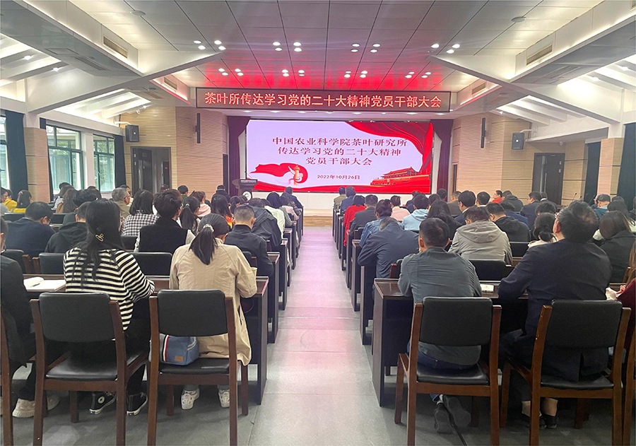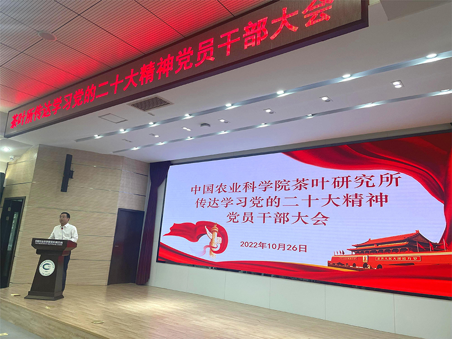 會(huì)議要求,全所干部職工要堅(jiān)決推動(dòng)黨的二十大精神在研究所落實(shí)落地、扎根生根,促進(jìn)我所“兩個(gè)一流”建設(shè)躍上新臺(tái)階。一是迅速組織傳達(dá),形成濃厚學(xué)習(xí)氛圍。把學(xué)習(xí)宣傳貫徹黨的二十大精神作為當(dāng)前和今后一個(gè)時(shí)期我所的首要政治任務(wù),精心組織求實(shí)效,推動(dòng)興起學(xué)習(xí)宣傳貫徹?zé)岢保_保二十大精神及時(shí)傳達(dá)、全面?zhèn)鬟_(dá)、層層傳達(dá)、到邊到底、傳達(dá)到位。二是深入學(xué)習(xí)貫徹黨的二十大對(duì)三農(nóng)工作的決策部署,把握好新時(shí)代新征程三農(nóng)工作的方向任務(wù)。深刻理解黨的二十大對(duì)科技創(chuàng)新、三農(nóng)工作、全面推進(jìn)鄉(xiāng)村振興的新部署,緊緊圍繞“國(guó)之大者”,恪守國(guó)家戰(zhàn)略科技力量使命定位,持續(xù)加強(qiáng)對(duì)茶產(chǎn)業(yè)高質(zhì)量發(fā)展、鄉(xiāng)村振興的科技支撐,更好發(fā)揮引領(lǐng)茶學(xué)科、支撐茶產(chǎn)業(yè)的主力軍作用。三是把學(xué)習(xí)貫徹黨的二十大精神與抓好當(dāng)前各項(xiàng)工作緊密結(jié)合起來(lái),與理清明年工作思路結(jié)合起來(lái),將思想自覺(jué)轉(zhuǎn)化為實(shí)踐動(dòng)力,將學(xué)習(xí)成效轉(zhuǎn)化為實(shí)干之力,進(jìn)一步謀劃和推進(jìn)我所“十四五”目標(biāo)任務(wù)落實(shí)。四是統(tǒng)籌做好安全生產(chǎn)和疫情防控工作,持之以恒確保科研安全、生產(chǎn)安全、生活安全。